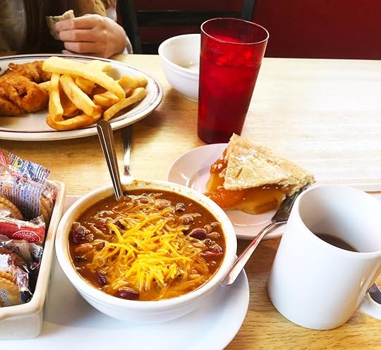 Mom: chili, peach pie, coffee. A real Agent Cooper kinda-lunch, and they make a damn fine cup of coffee.