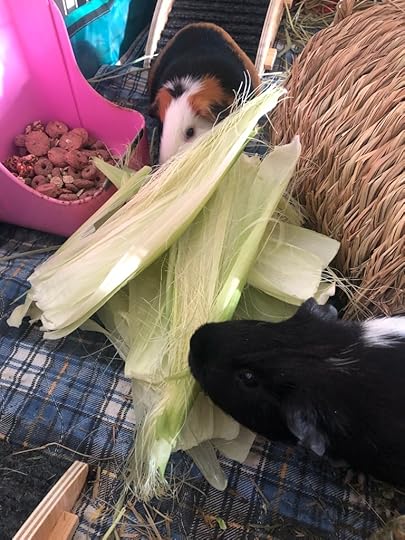 It’s corn season! And I feel duty-bound to report to my fellow pigness owners that not only do piggies LOVE corn husks, they go crazy for corn silk, which, in our family, we call pighetti.