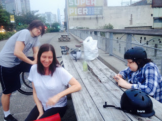 Out for a bike ride with my sons in NYC. Notice the electronic device .... SMH