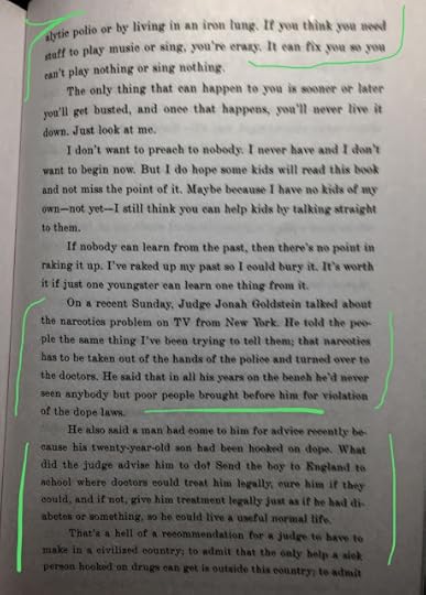 "If you think you need to suffer to play music or sing, you're crazy. It can fix you so you can't play nothing or sing nothing. The only thing that can happen to you sooner than later you'll get busted, and once that happens you'll never live it down. Just look at me.""I don't want to preach to nobody. I never have and I don't want to begin now. But I do hope some kids will read this book an not miss the point of it. Maybe because I have no kids of my own--not yet--I still think you can help kids by talking straight to them."