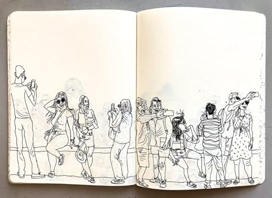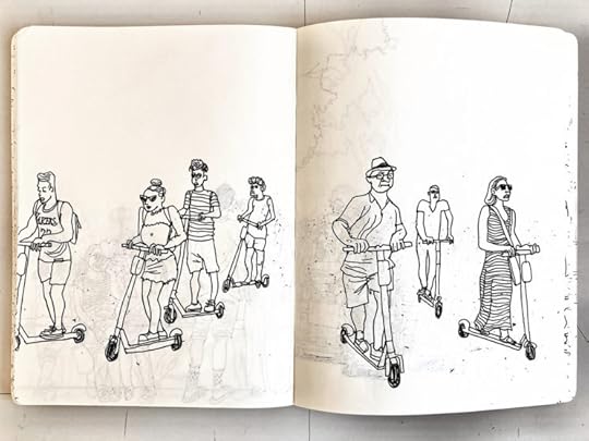 Este é o caderno dos desenhos originais para o livro VAU, onde fui desenhando livremente e sem cronologia momentos significativos que guardei do filme de Miyasaki. A energia criativa não se contabiliza, sai em jorro até a fonte secar; por isso fui desenhando mais situações do que aquelas que sabia poderem entrar no livro (com um número de páginas pré-definido pela coleção). Depois, é na capacidade de editar e eliminar o supérfulo até chegar ao essencial que se vê o artista. O que aprecio nos cadernos é ficar lá tudo, a imperfeição, as várias tentativas, a vida tal como ela é.