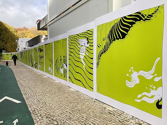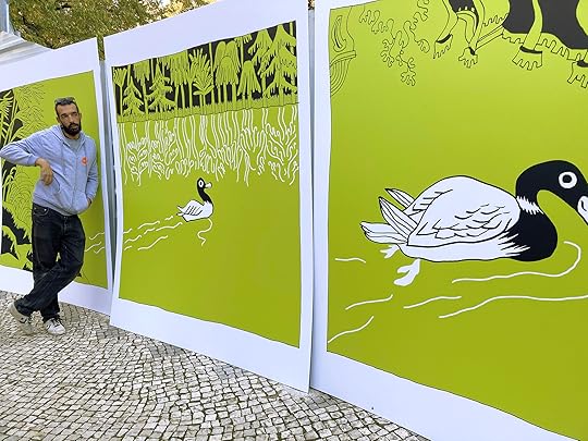 A Gulbenkian desafiou-me a criar uma intervenção desenhada no perímetro da obra em curso do novo CAM. A primeira sequência gráfica acaba de ser aplicada na rua nicolau bettencourt (a segunda – mais extensa – só no próximo ano). Usei o pato-real como protagonista de um voo que é sobretudo um arco de tempo que cobre os últimos 200 anos de ocupação daquele lugar por onde passaram o primeiro jardim zoológico, um velódromo, ou a feira popular. Disponível na rua, para os vossos olhos, até à conclusão da obra.