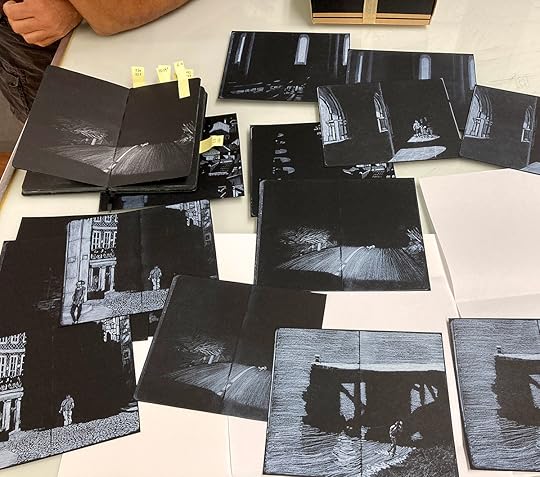 Aos 14 anos desejei ser banda desenhista à boca de uma grande máquina de offset, por isso alimento um interesse profundo pela produção dos meus livros. A impressão é sempre uma tradução, uma recriação do objecto inicial e por isso quero estar o mais presente possível nessa metamorfose. Vem isto a propósito das primeiras provas do livro DESENHAR DO ESCURO que fui hoje ver à GUIDE: a decisão de imprimir os desenhos a branco sobre papel preto – reproduzindo o processo original de criação – coloca imensos desafios em caminhos pouco frequentados.