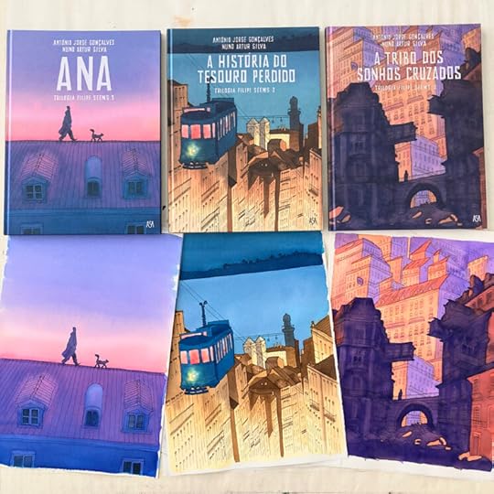 a ASA/LEYA decidiu fazer nova edição da trilogia Filipe Seems, que eu e o Nuno Artur Silva criamos há 30 anos. Estou grato por estes livros que foram o início (longínquo) de um caminho poderem ter uma nova vida. Os originais foram digitalizados de novo com tecnologia recente (permitindo melhor reprodução das cores), o texto foi revisto, novas capas e material inédito foi criado e algumas páginas tiveram de ser redesenhadas porque os originais tinham desaparecido: fui falsário de mim próprio, a redescobrir técnicas de desenho e pintura que deixei de usar há décadas. Por fim, a escolha do papel e o formato generoso deixam-nos mais próximos dos desenhos originais.