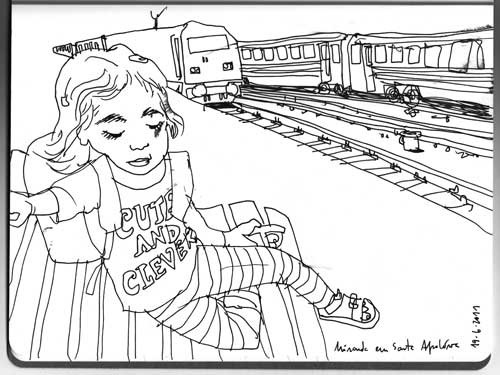 drawing trains at sta apolonia (lisbon): first one is mine, second is M's.