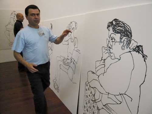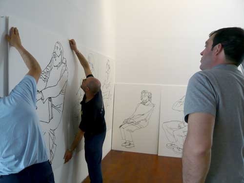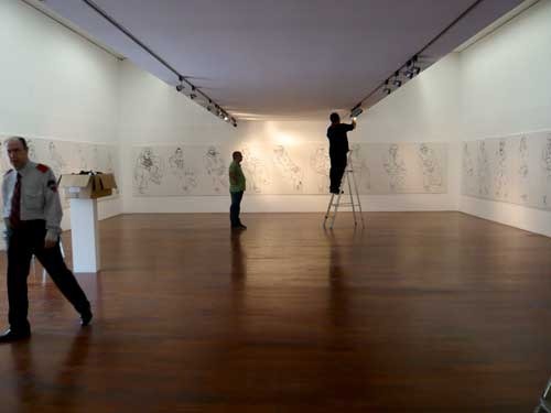 Putting up the first large format exhibition of "Subway Life" drawings in Matosinhos (Portugal)