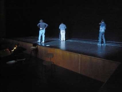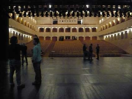 os últimos ensaios fora de palco. ansiosos e necessitados de entrar no grande auditório. a luz está instalada, o vídeo é amanhã. chegou o momento da minha ansiedade: existem SEMPRE problemas na instalação dos projectores ( a potência não chega, a distância não dá, a lente não serve, etc, etc). será que desta vez vai ser a excepção?