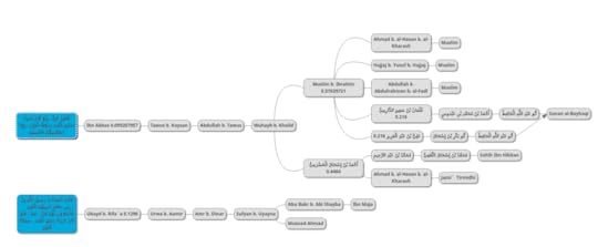 Below is a diagram of the chains of the two hadiths that contain that statement: