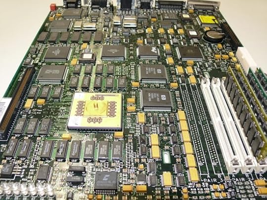 The main printed circuit board from a Hewlett-Packard HP9000 Model 715 UNIX Workstation. (click for credit)