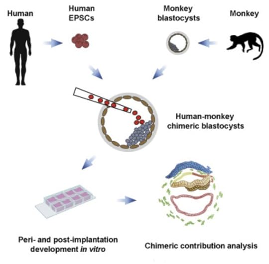 An illustration from the scientific paper being discussed. A few readers have sent me news stories like this one, entitled “Human-Monkey Hybrid Embryo Created by Joint China-U.S. Scientist Team.” Obviously, the concept of mixing the embryos of people and animals is abhorrent, so these readers wanted my view on the experiment and what it means. Since “science journalists” know little about science and even less about journalism, I ignored what has been written in the press and went straight to the actual scientific paper to find out what had been done. While the paper alleviated some of my initial concerns, it most certainly didn’t alleviate all of them.