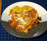 Use this sauce for any kind of pasta you got in your pantry. Serve with parmesan cheese and mild banana pepper for decoration and additional flavor.