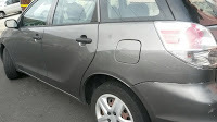 I found my dark gray Toyota Matrix parked right in front of our gate. I started washing, the roof first using the step stool. Then I did the passenger side. I ran out of water so I thought of leaving the stool inside the car. I was afraid someone passing might swipe it if I left it on the sidewalk. I tried my key on the passenger side door but it didn’t work. I thought maybe because the key hole is wet with soap. I dried the keyhole. I realized it’s so black with dirt. That could also be the reason why the key didn’t work. I detailed the keyhole and tried the key again. No luck, I might have to get it fixed. I gave up and continued cleaning.