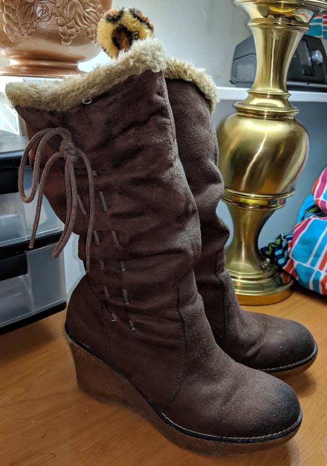 The winter boots he bought me that I still wear once in a while, to this day, after twelve years.