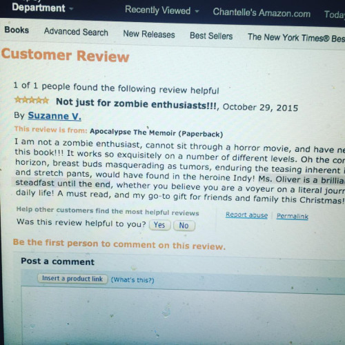 New #amazon #review making me _blush_ #apocalypse #apocalypsethememoir #zombie #5star #shy (at Stratfood)