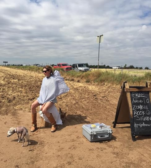 making lots of new #fans at #cadillacranch #Apocalypsethememoir #indy #texas @redneckdrradhead #worldsfirstrealzombiebook (at Cadillac Graveyard)