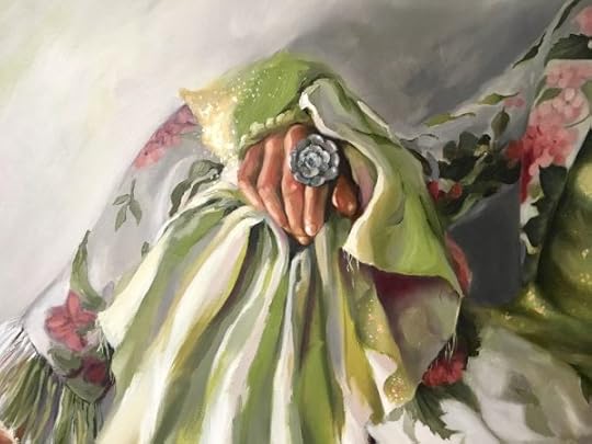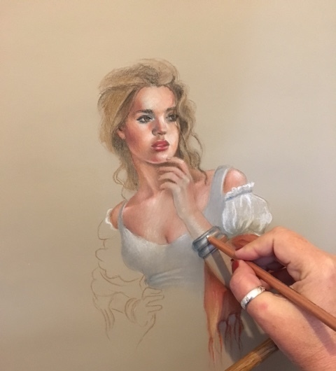 And when, on the day of our first sitting, Jess emerged in a decadent costume of frills, flounces and passementerie by designer Madeleine Sinco I just knew I was going to have fun with this painting!