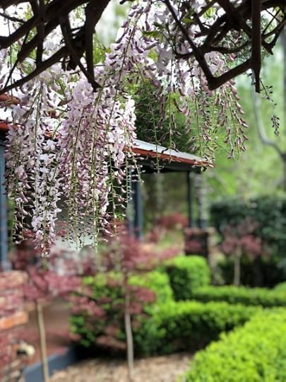 The fountain bubbled, young water plants waving and crystals of light glistening as the water spilled over the edges. It had cleaned up beautifully, the cracks and missing chips adding to the fountain’s charm and I trickled my finger along the fluted edge. The new border of young native rosemary rippled in the breeze and the gravelled courtyard shone in the sunlight. As Mary Poppins might have said, it was practically perfect.