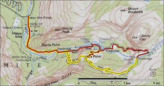I'm posting a contour map too. You can see how the two trails diverge. The trail climbs more steeply when the contour lines are closer: