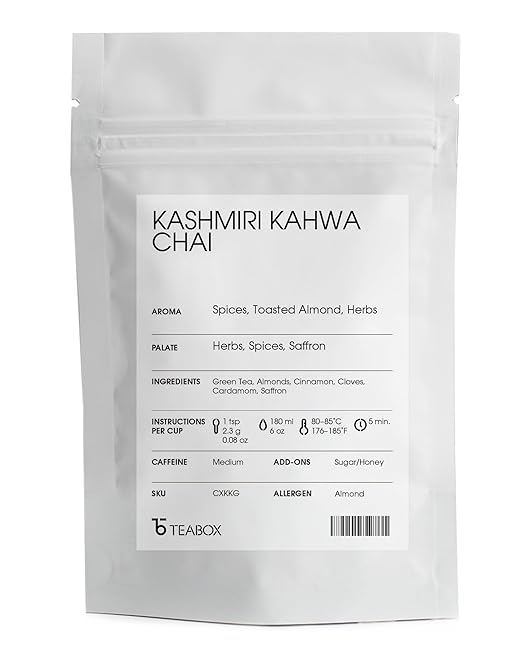 Kashmiri Kahwa chai is one of the flavors of several varieties of tea provided by Teabox.
