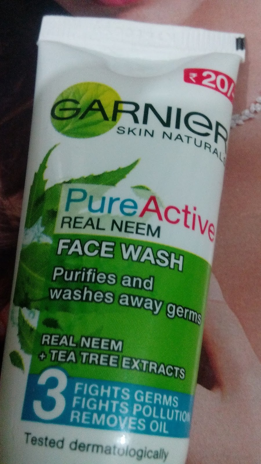 Product claims: A soap free, gentle face wash with real Neem extract and Tea Tree oil, this face wash by Garnier is great for everyday use. Neem has anti-bacterial properties and helps fight germs that cause pimples and acnes. It deeply cleanses and purifies the skin. Tea Tree oil too fights acnes and has many benefits for the skin. Pure Active face wash combines the best of both and gives you clean, pimple free and refreshing skin that will glow.