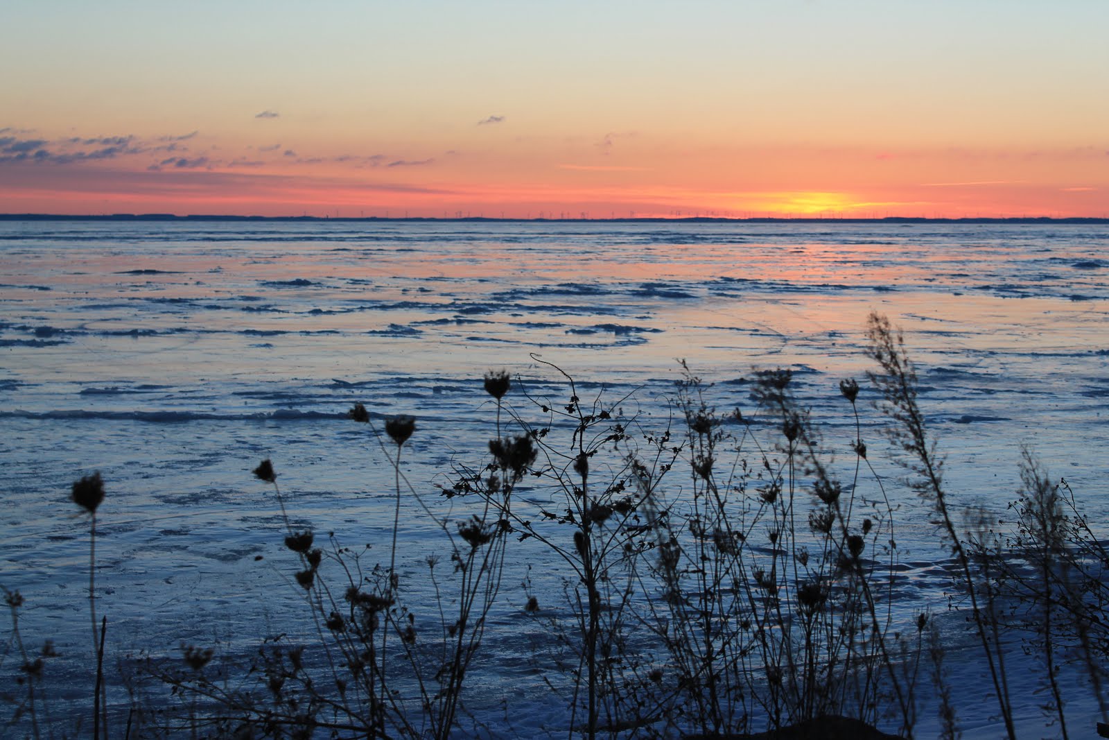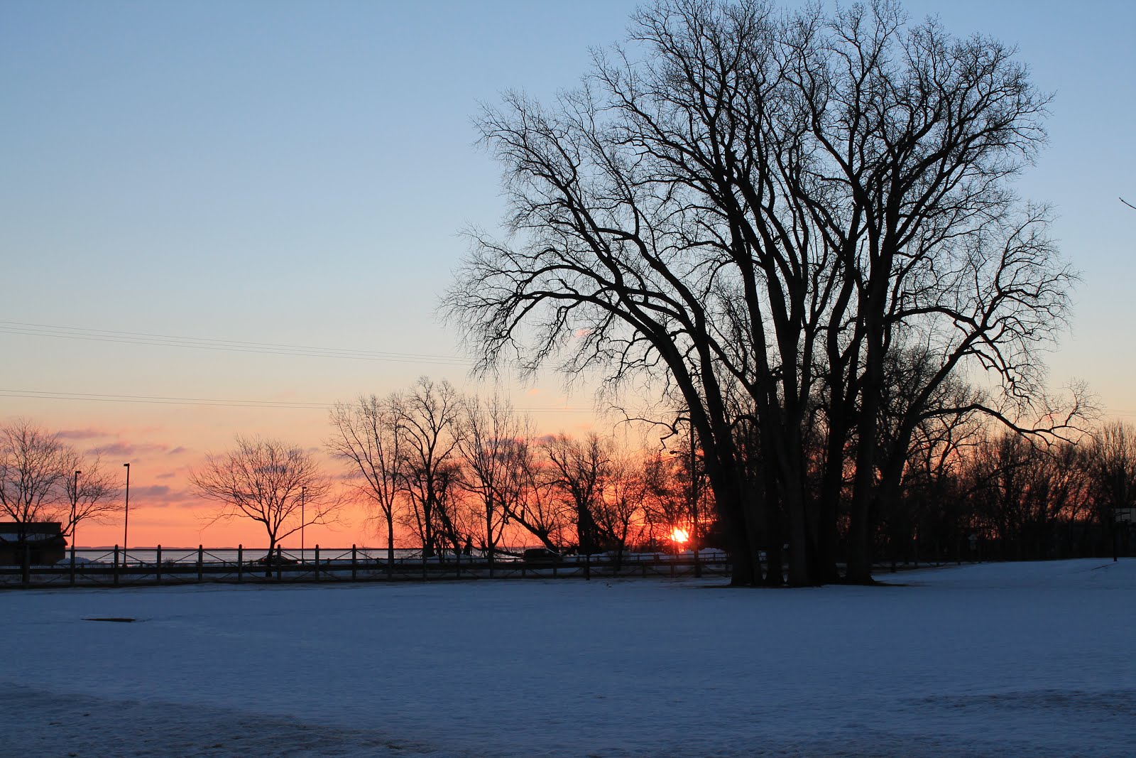 But winter does bring one gift: late sunrises. Even I, the writer with no day job to report to, can get myself out of bed and down the street by 7:30, when I can watch the frozen lake turn purple and pink as the sun rises into the cold.