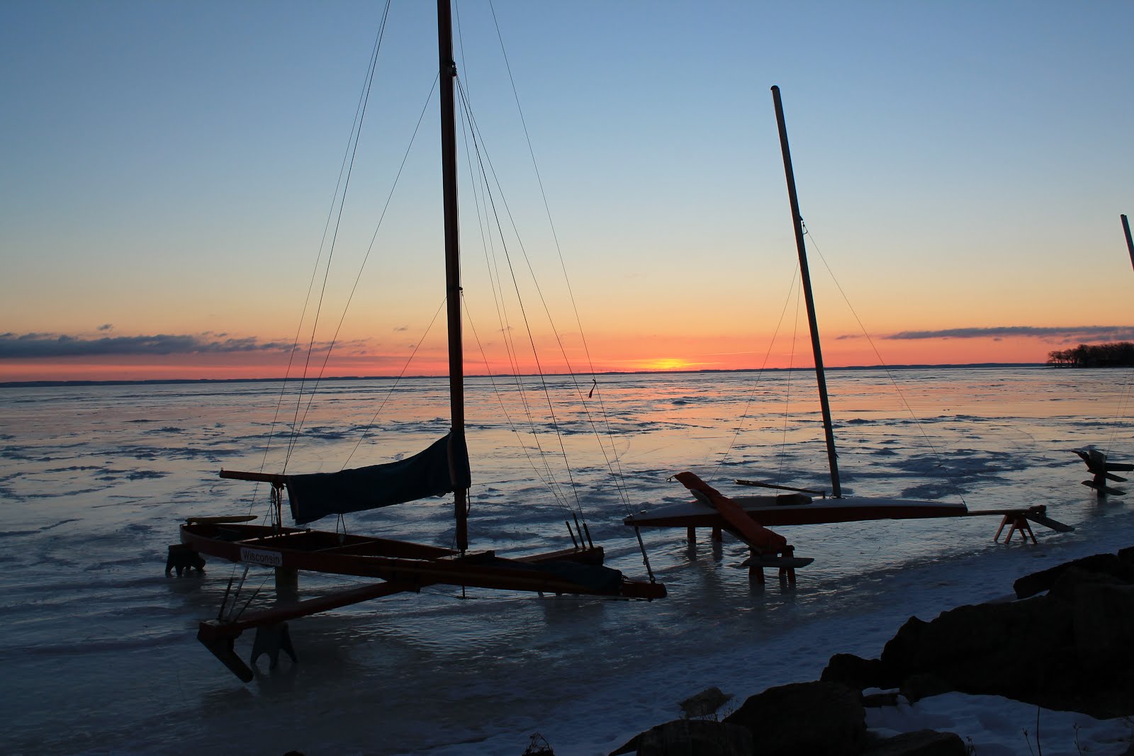 These masts belonged to ice boats, fitted with blades instead of hulls, created to skim the surface of the frozen lake at speeds akin to those achieved in cars travelling country highways.