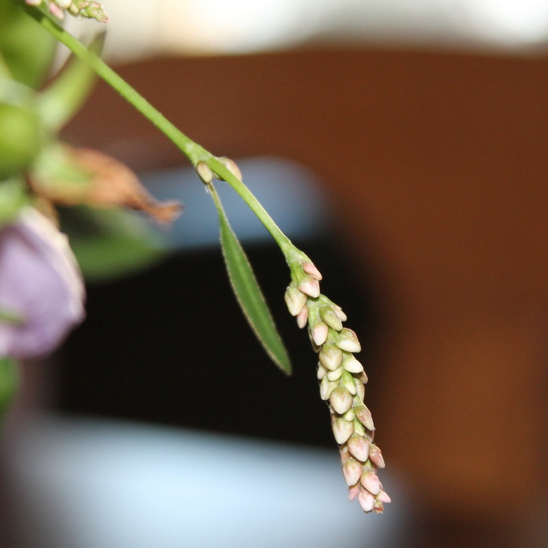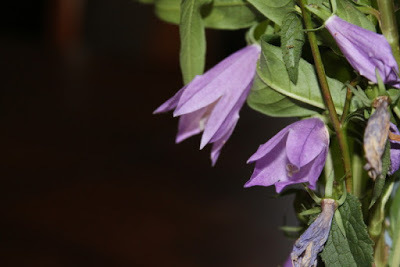 In the big picture, their stems are stuffed with way more leaves than their tiny buds justify. However, even weeds have some beauty to them. The little yellow ones open and close their blond heads, depending on the time of day. The purple ones, the biggest blooms of the bunch, look kind of like hosta flowers. The pinkish white ones curve like a graceful head of wheat.
