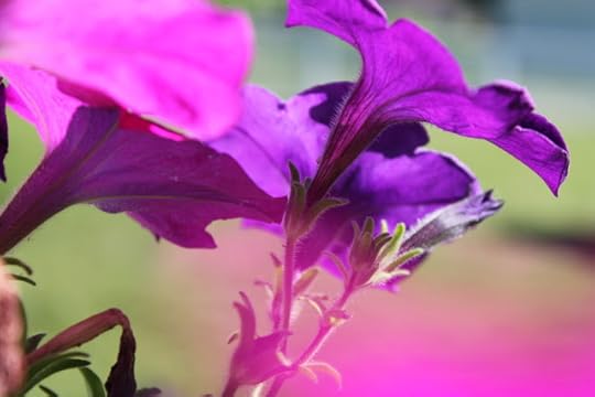 The littles: Petunias I envision spilling over their hanging pot like a waterfall or a pretty girl's hair instead reach toward the sun, not yet heavy enough to drape. The most promising of my tomato plants, the one with the purple skinned fruit, has just three tomatoes growing. The tiny little lavender plant, the one that's questionable for my gardening zone, the little plant doesn't have the size to survive a baby bunny let alone the strength to wrestle with a Wisconsin winter and win.