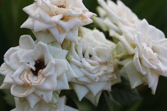 The dying: The mini roses I was so excited to see forming have gone from picture perfect to full bloom. Then, they revealed the yellow stamen at their centers. Next, the petals weathered and their happy centers turned deep brown. The poppies are long gone. All that remains of the lilacs are dry nubs.