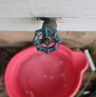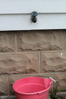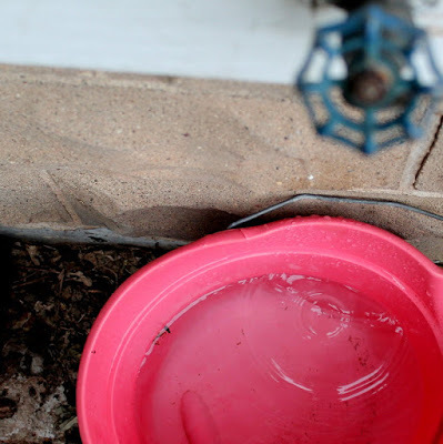 As for the bucket under the dripping faucet, twenty-four hours after placing the pail, I returned to find that thirsty mouth full. Each new drop that fell launched another droplet over the lip of the bucket to the damp collection of weed and brick at it's base. Shocked, I hauled the bucket to water the plants, splashing as I went.