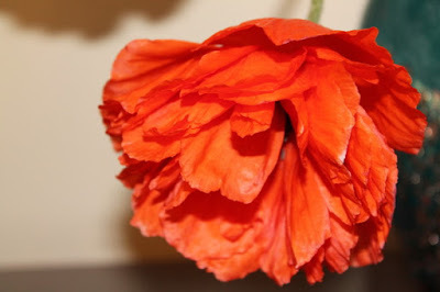 Despite poppies' tainted reputation, I was thrilled to discover some kind of hybrid poppy growing in my yard. But because of that reputation, I didn't try to bring any in the house until my dogs broke one off. Unsure of if people even cut poppies, I took it into the house, plopped it in a vase, and subjected it to a photoshoot.The next day, it dropped its petals and a mess of black pollen on my desk.