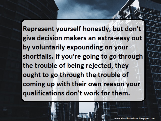 If you're in a situation like this, I urge you to do the same. You may not be a writer, but I'll bet you interview for jobs from time to time. Be honest about your qualifications, but once the potential employer is aware, don't put undue stress on an area where you think you might be unqualified.