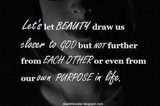 Beauty is just one positive trait in a huge, long list of positive traits that are out there. And physical beauty is skin-deep and fleeting, anyway. So, let's try to appreciate beauty without obsessing over it. Let's thank God for it without making it our main focus. And let's refuse to lose sight of our own God-given value, because, trust me, he created you with value and purpose that is so much more than how you look.