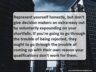 So! No giving decision makers an extra-easy out by voluntarily expounding on your own shortfalls. If you're going to go through the trouble of being rejected, they ought to go through the trouble of coming up with their own reason your qualifications don't work for them. :)