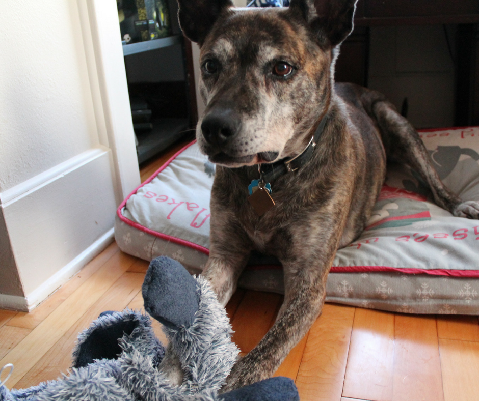Sadie, however, who doesn’t like to get in trouble—and will even act guilty when we’re about to catch Luther being naughty—wouldn’t take her package from me. She knew the other gifts under our tree weren’t for her, and she didn’t trust that she could sink her teeth into this one.