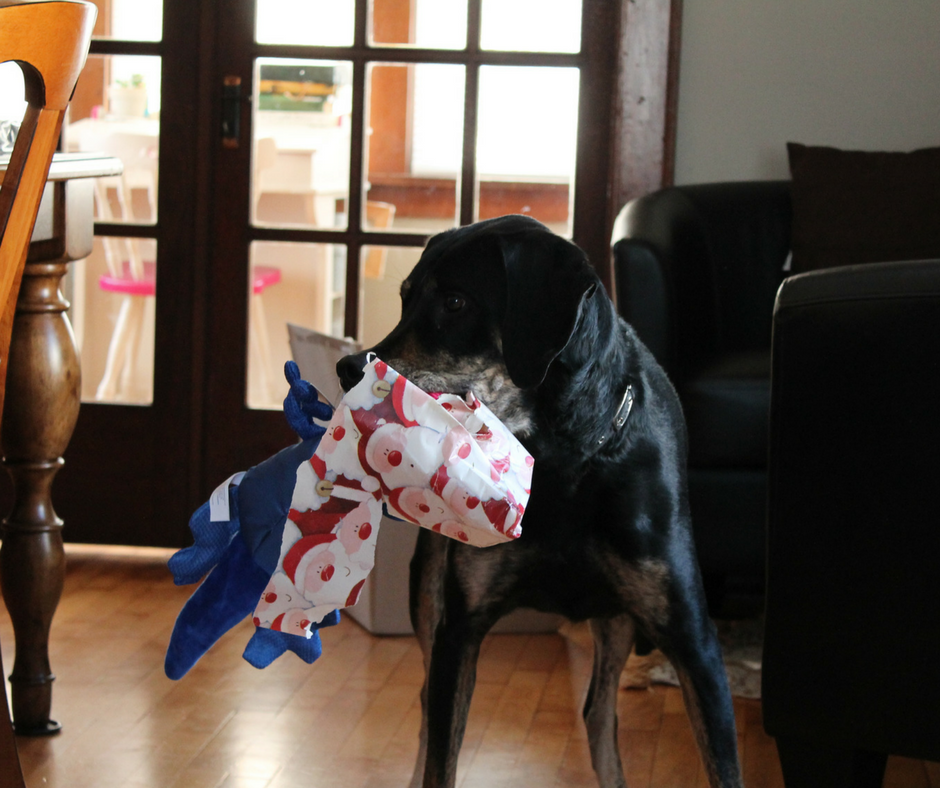 On Christmas Eve, my parents gave me a present for each of our dogs. We brought them home wrapped because it’s fun to watch Luther and Sadie tear through the paper and pull out the toy. Luther, our spunky hound, behaved as expected, happily ripping out his toy.