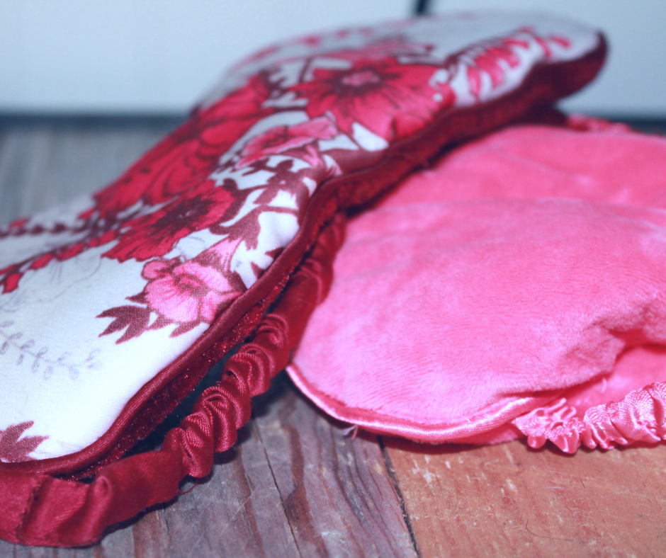 I have a favorite with a pretty satin floral pattern on one side, velvet on the face-side, and real lavender inside. The mask is getting older, and, unfortunately, my hound also likes the smell of lavender... I caught him chewing on my precious mask. He didn't damage the fabric exactly, but he soaked it with slobber.