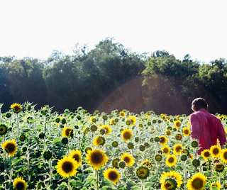 Sunflower field with man photo by Elijah Hail on Unsplash