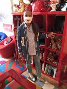 These are the masks I wear, as soon as I leave my house, when I’m out in the street, in public, running around, doing errands. I take it off when I eat out. I wear it when I meet friends, or go into a store. My daughters gave me the beautiful lip one, by a fancy British designer, a friend gave me the polka dot red one that looks like Minnie Mouse, both are fabric which are a little harder to breathe in. And the easiest to wear, for me because I have a small face, are children’s paper medical masks (Mickey Mouse and Goofy are on mine, I also have one with pink dinosaurs), the children’s size fits perfectly if you have a small face, and regular surgical masks are cheap and fit normal adult faces, for men too (or black fabric ones if they want to go James Bond/Darth Vader). I wear reading glasses, and they don’t fog up, you can wear your glasses too. The mask must cover your nose, don’t stick your nose out over the mask. I promise, you’ll still look cute, or sexy—you are doing the entire world a favor if you wear a mask. Let’s save America and the world, and each other by following the rules!!! Please wear a mask!!!