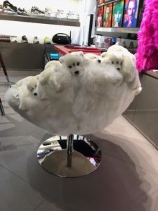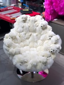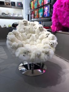 I’m including a photo of something very fun I got recently. I saw it in a shop window, as a display item, and tracked it down. It’s a company that makes furniture made with teddy bears and other toy stuffed animals. You can either get it with the teddy bears over the whole surface of a chair or bench, or just around the edges. It’s easier to sit on with the teddy bears just around the edges, so I went with that. I love it, it’s so fun, and super comfy to sit on. I ordered it with little white polar bears, but you can have it with any kind of toy animal you want: monkeys, camels, bears, dogs, cats, swans, flamingos. It’s a silly fun thing and I love it.