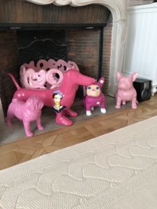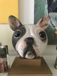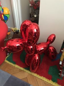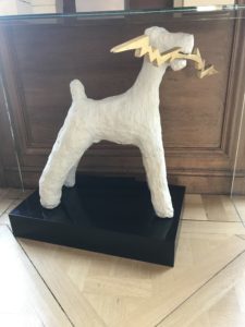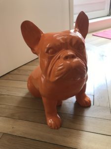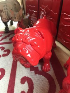 As many of you know, I love art, particularly contemporary art (and I used to have a contemporary art gallery, for 6 years, in San Francisco. I still miss it!!!), and I especially love happy art, and art that makes me smile. In more classic art, I love paintings of children, or mothers and children. And in contemporary art, I love paintings and sculptures that involve words and sayings. I love hearts, AND I love sculptures of dogs, preferably in bright, fun colors. I realized recently (especially when I moved apartments 6 months ago and had to pack them all!!! and then find places for them in the new apartment) that I have a lot of fun sculptures of dogs, so I thought I’d share some of them with you. Most of them are painted bronze (and weigh a ton), some are fiberglass/also in bright colors, and some are metal like tin, or aluminum, and some are in odd materials, (one of them is made of little strips of newspaper). So I hope you enjoying seeing them…..I can never resist a cute dog statue, especially in a bright color. The French bull dogs in a multitude of colors are by an Italian artist, and the ones of Chihuahuas (in gold, red, and other colors), and the big white dog are by a Belgian artist named Willem Sweetlove, and I love his work (I also have a big red elephant by him, the size of a real baby elephant!!! It’s in my entrance hall, as a surprise to welcome arriving guests).
