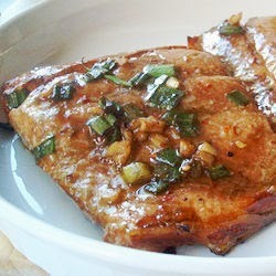 Add a dollop of green onions to the top of each salmon steak and serve.