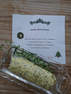 My niece JJ is an excellent and creative cook. This past Christmas she gave me a roll of garlic herb butter that is to die for. Not only is great on cooked steak and veggies, it’s delicious spread on crackers. Of course, I had to make another batch right after the holidays because we devoured her amazing gift in a flash. I am confident you and yours will like this recipe, too.