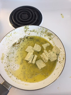 Warm garlic, butter, and cilantro in a frying pan on medium heat. *I use cilantro because my husband is from Costa Rica, but you can use Italian or regular parsley if that's better for you.