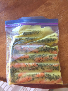 After they are room temperature, I add them into medium-size freezer bags, making sure they lay flat. I also make sure to put two servings into each bag - one for my husband and one for me.