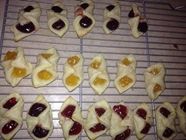Blend all ingredients except filing in a medium-sized bowl. The trick to making tender kolackys is not to overwork the dough. If you do the pastry will be tough.