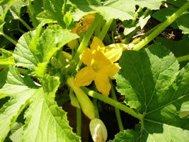 Yellow Summer Squash has much potential for food creativity. I’m not a gourmet cook, but I love the fat yellow squash that will zoom past ripe if you so much as turn your back on them for a moment. Searching in the huge leaves to find the small tender ones is the ticket. If too big, discard the seeds and use the still tender outside.