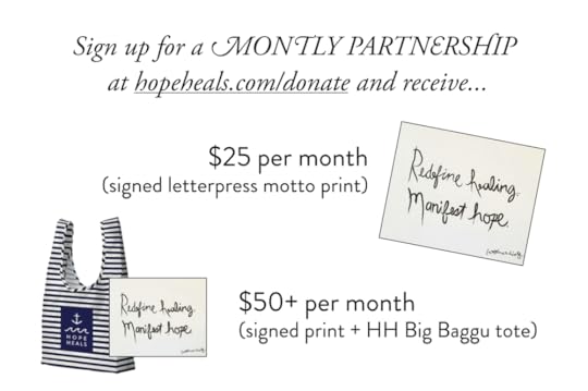 Many of you have already pre-ordered copies of Hope Heals, the book. You've told us your AMAZING plans to do a book club with your non-Christian neighbors (we've even made two FREE book study guides to help facilitate such groups--check them out, here) or to give out the book as wedding gifts this Spring or to take part in our HOPE IT FORWARD campaign (you buy the book and we'll give it away to a specific person in the midst of suffering--check it out, here).