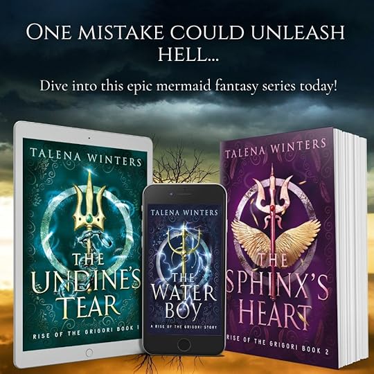 The Rise of the Grigori currently has three titles: The Undines’s Tear (Book 1), The Sphinx’s Heart (Book 2), and a standalone origin story prequel for Zale, the first merman in three millennia, in The Waterboy. The Waterboy is a free download when you sign up for my Books & Inspiration newsletter.