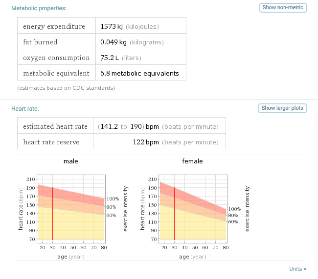 Let’s ask Wolfram Alpha how much am I going to burn in 15 minutes of workout,